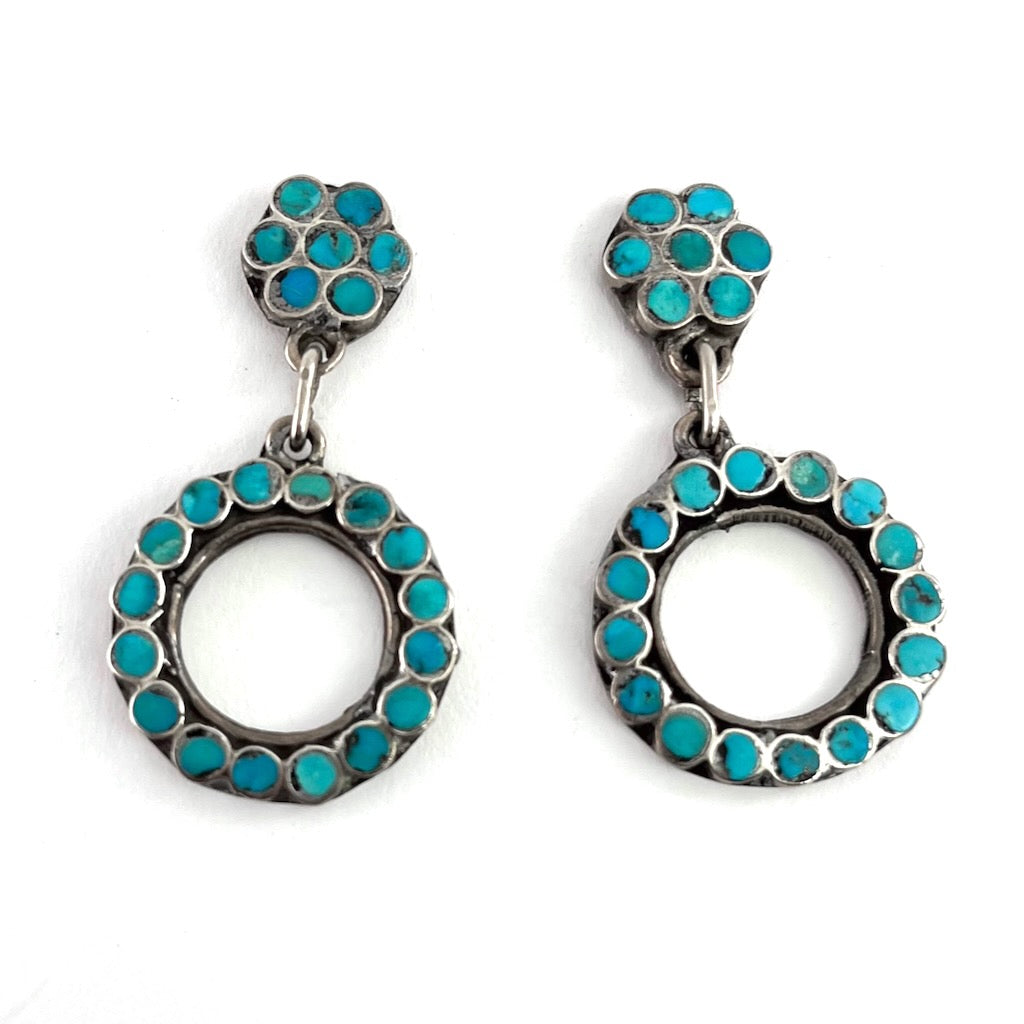 Vintage sterling silver with turquoise inlaid hoops circa 1950's-60's. Unsigned.