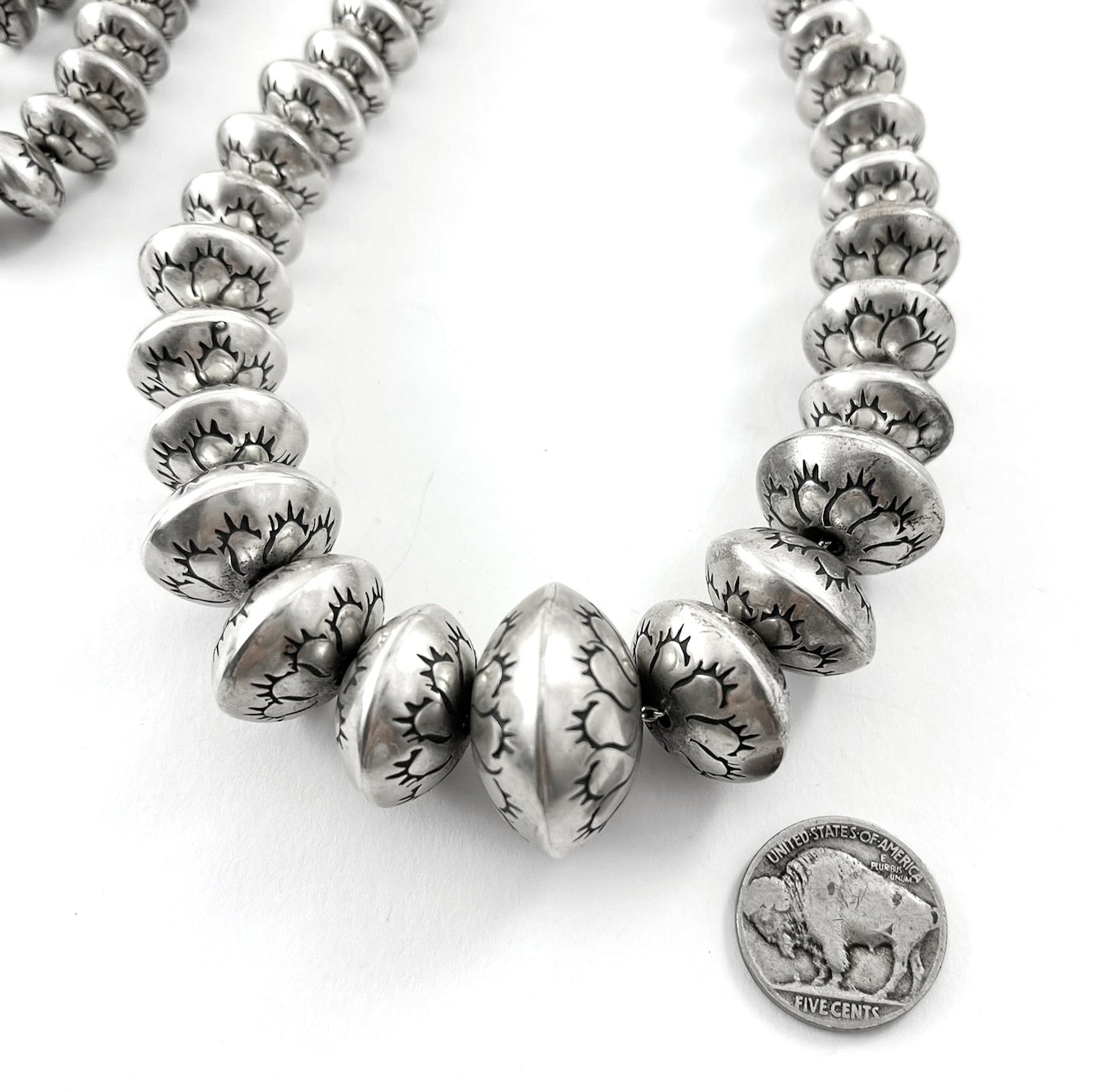Vintage sterling silver beads, hand stamped, circa 1970's.  Navajo.