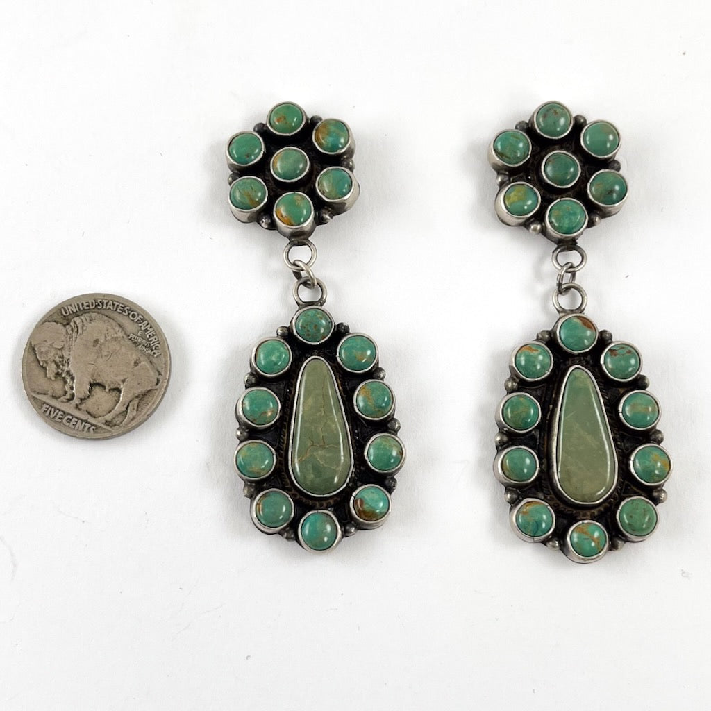 Green turquoise set in sterling silver by Navajo artist Dean Brown. Signed DB by the artist and marked sterling.