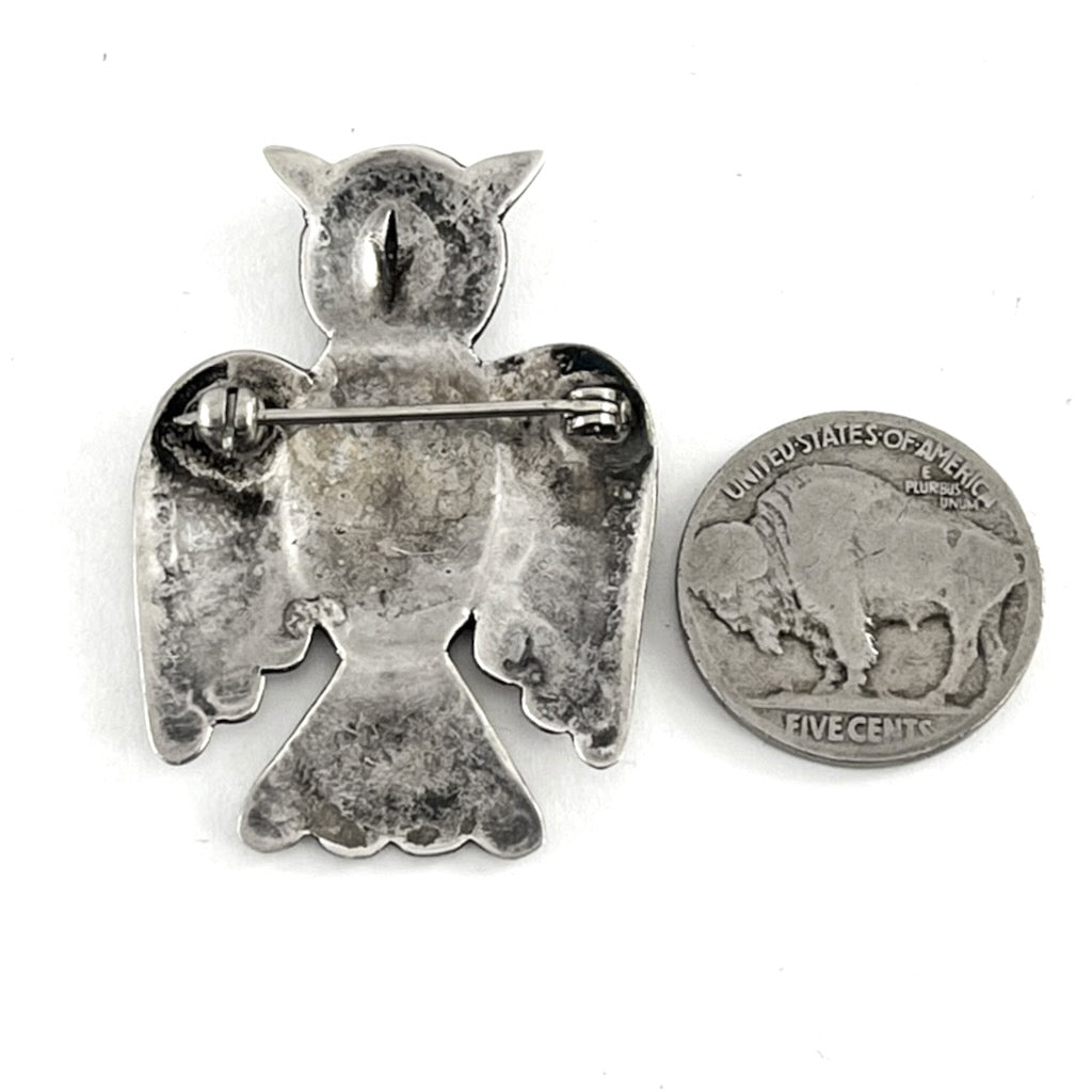 Vintage sterling silver pin with turquoise eyes! Circa 1940's-50's. Lovely hand stamp work. Unsigned.