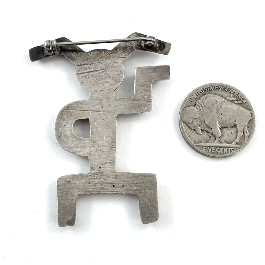 Vintage sandcast pin in the style of a rock wall petroglyph or dancer, circa 1970's Unsigned.